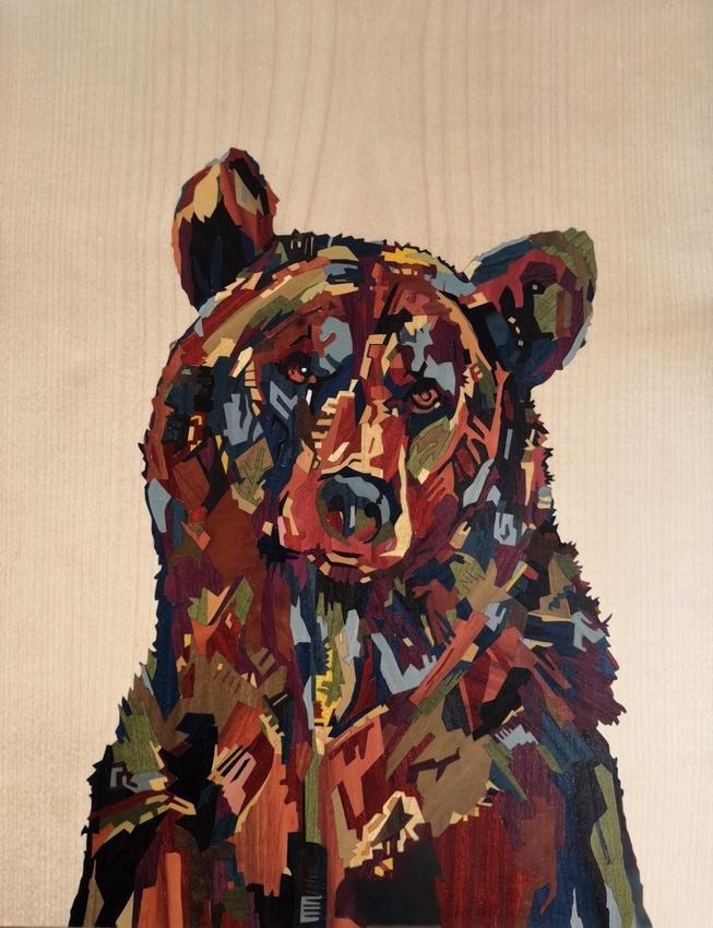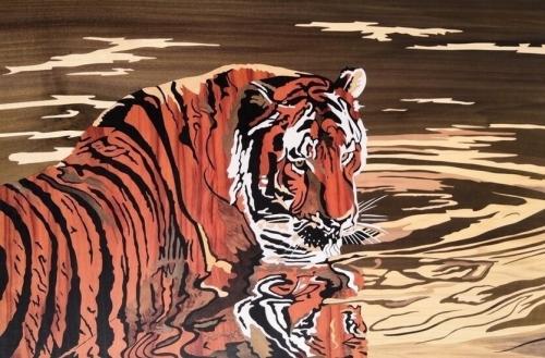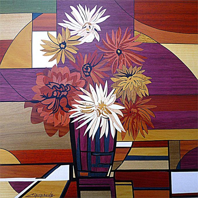 réalisée avec plusieurs essence de bois naturels et teintés réalisée entièrement à la main dans mon Atelier à Crémieu...Made in France