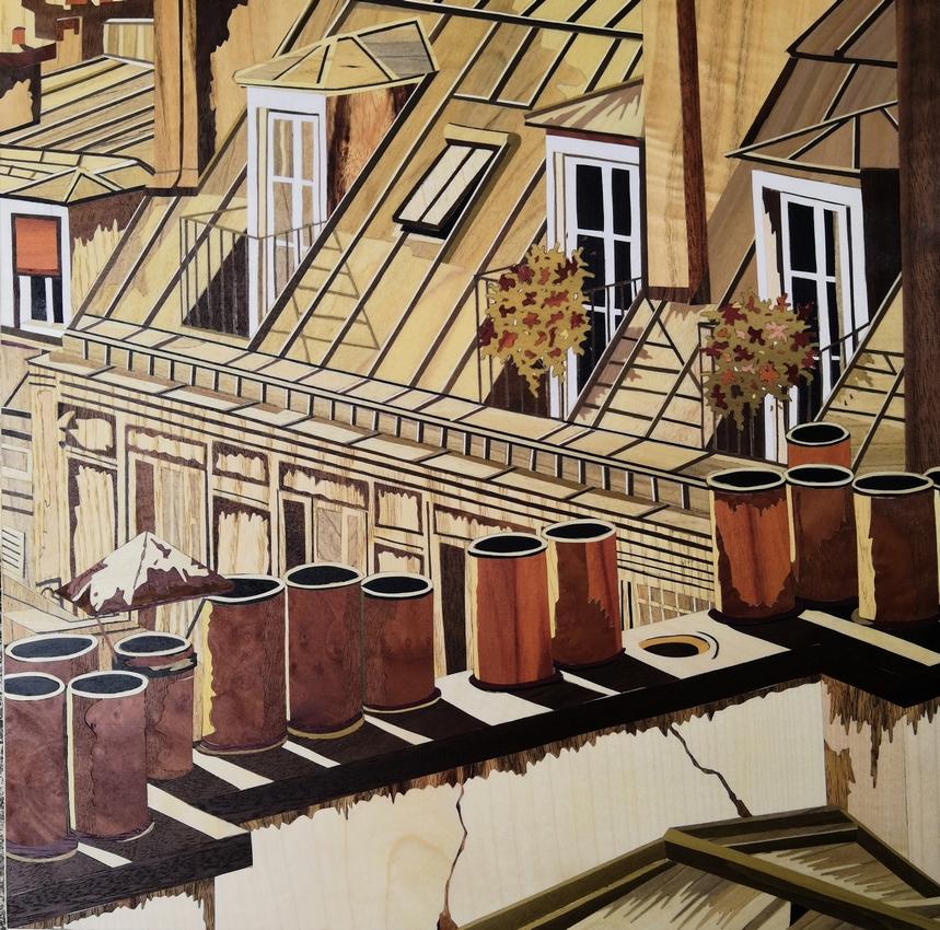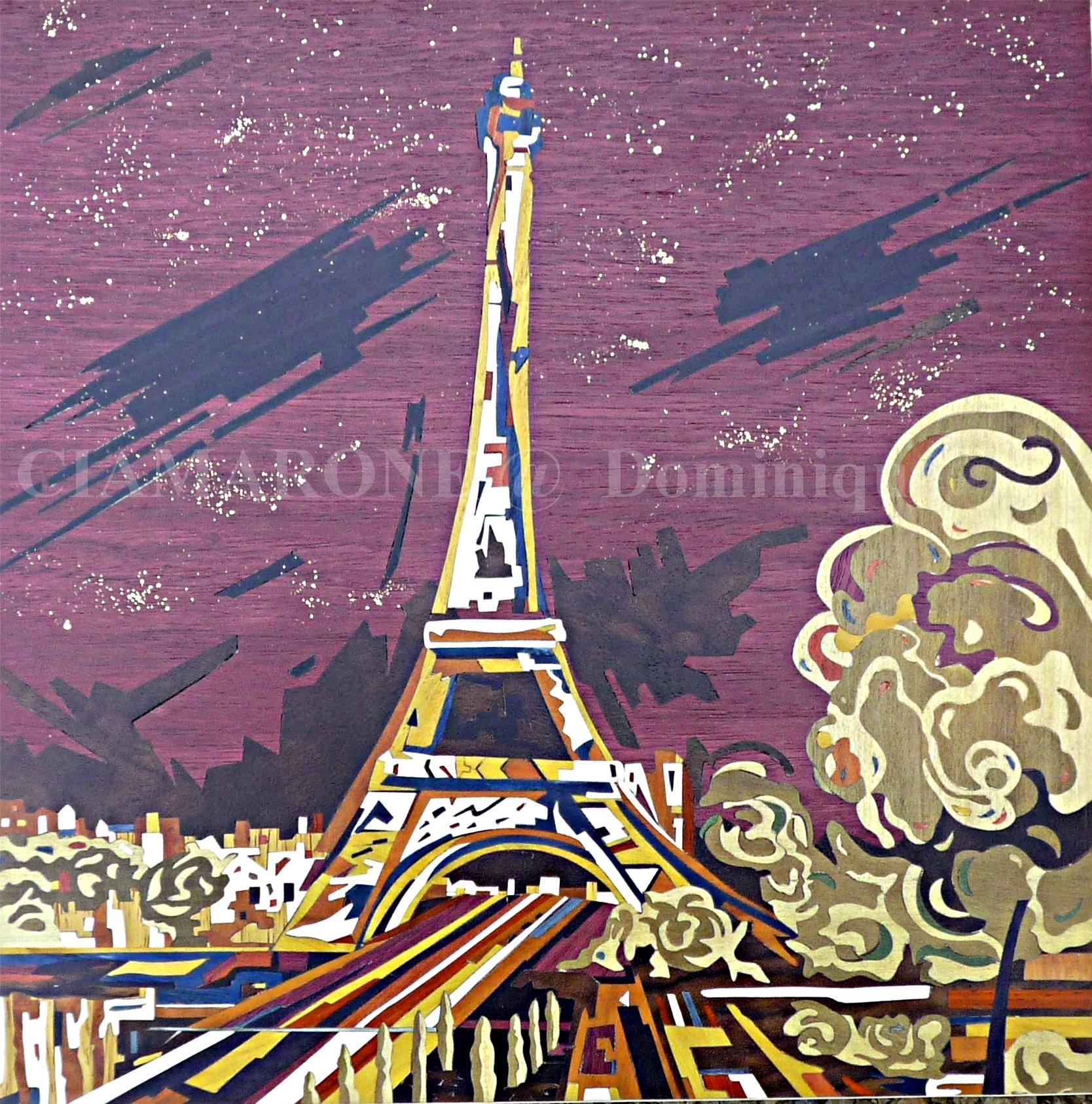 38cm x 32cm marqueterie"Une nuit à Paris"
