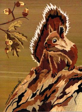 "Écureuil" 25cm x 20 cm avec son encadrement réalisée avec plusieurs essence de bois naturels fait entièrement à la main dans mon Atelier à Crémieu...Made in France
