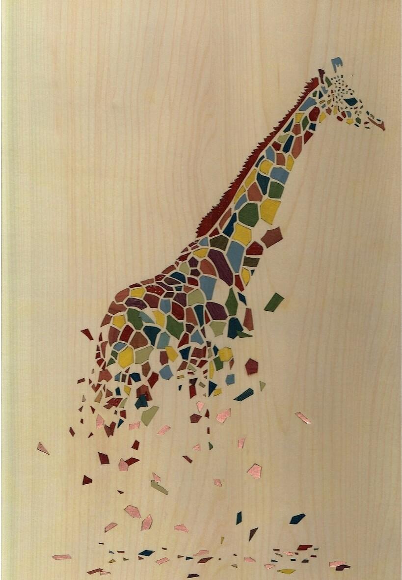 Marqueterie" girafe déstructurée" 45cm x 35cm