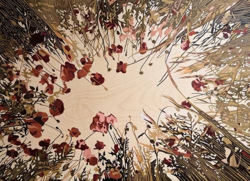 "envol" Marqueterie contemporaine mesurant 12cm x 32cm.